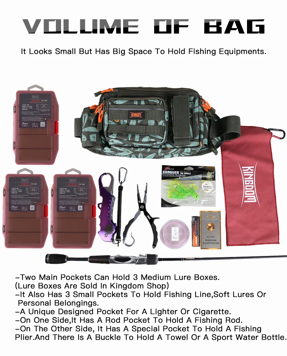 Особенности: 1, 1000D водонепроницаемый нейлоновый материал 2, пряжки ремня изготовлены из высококачественных материалов, прочные и прочные, и имеют высокую весовую Емкость 3, больших размеров: 31 см * 18 см * 16 см 4. 2 вида цветов в наличии: зеленый, хаки 5, не царапается, водонепроницаемый внутри и снаружи, молния с супер прочным YKK 6, высококачественный пластиковый материал крепежа 7, Большая внутренняя емкость, 8, пряжки для ремней изготовлены из высококачественных материалов, прочные и прочные, и имеют высокую весовую Емкость 9, логотип Kingdom Персонализированная наживка печать, красивый внешний вид, изысканный внешний вид, идеальная прострочка, беспроводная головка, упаковка с твердым дном, экспресс-доставка прибывает быстро и вовремя.