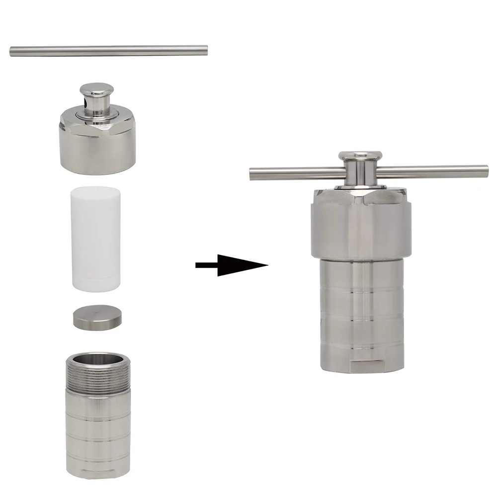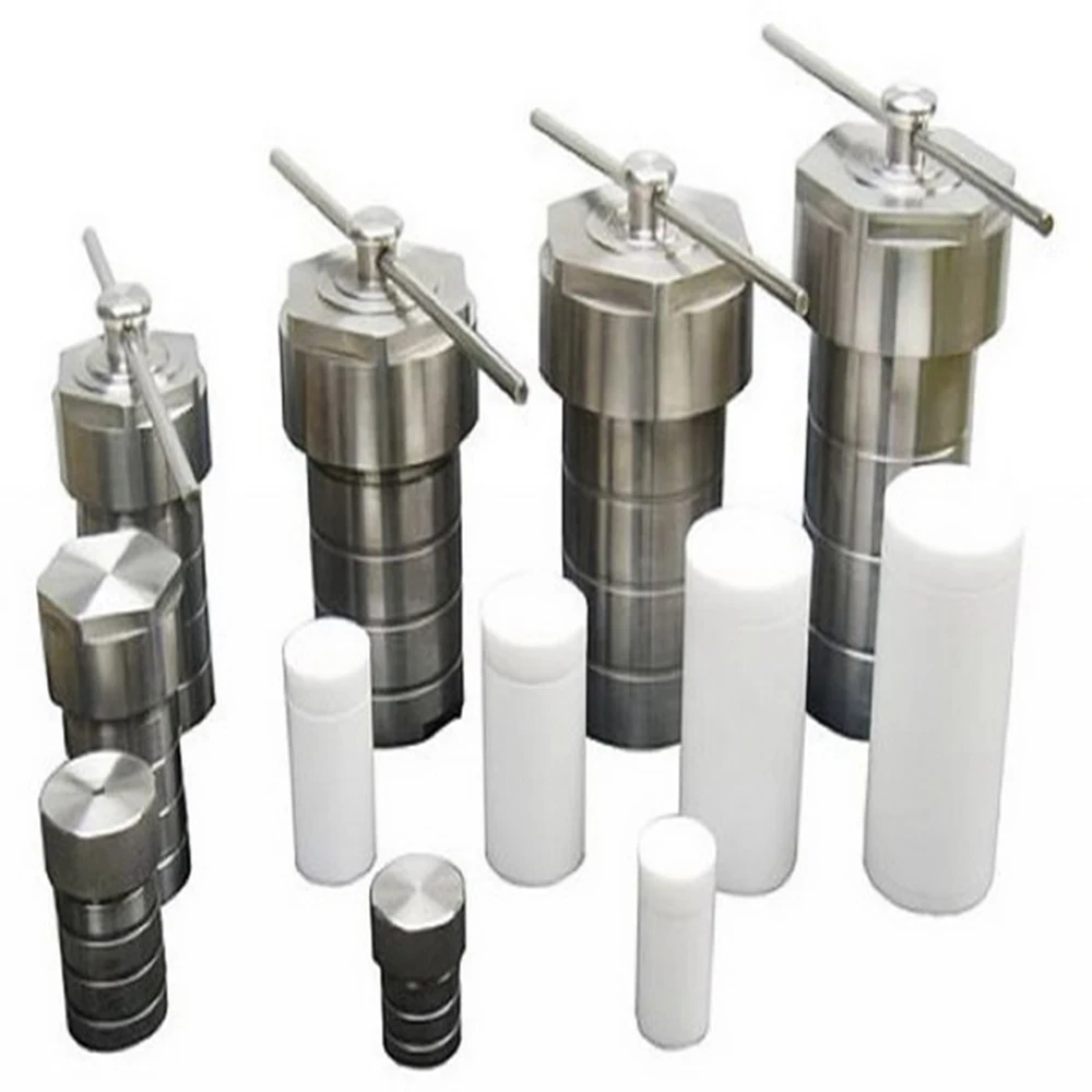 Hydrothermal synthesis reactor is used in catalysis, crystal, polymer and other experiments, it adopts the external heating mode, in order to reduce the size, and suitable for sevral reaction kettles working at the same time and same reaction temperature (for example, put sevral reactors inside the oven for heating), special models can be customized. Hydrothermal synthesis reactor, also known as digestion, pressure melting bombs, hydrothermal synthesis reactor, high temperature and pressure digestion vessels, PTFE high-pressure tank is in a certain temperature and pressure conditions, certain synthetic chemicals supplied reactor. It is widely used new materials, energy, environmental engineering and other fields of scientific research and experiments, is university teaching, scientific research units commonly used small reactors. [PARAMETER-1]--Maximum temperature: 200 degrees, Security temperature: 180 degrees, Maximum pressure: 3Mpa, Security pressure: 2Mpa [PARAMETER-2]--Heating, cooling rate: 5 c / min, Material: 304 stainless steel reactor, Liner: PTFE liner [ENSURE SAFETY]--PTFE lining can bear high temperature and high pressure, corrosion resistance, almost insoluble in all solvents, physical inert. [FEATURES]--High temperature resistance, Insulation resistance, Ultra corrosion resistanc, Anti-pollution, High lubrication [APPLICATION]--It is widely used in new materials, energy, environmental engineering and other fields of scientific research and experiments, is university teaching, scientific research units commonly used small reactors.