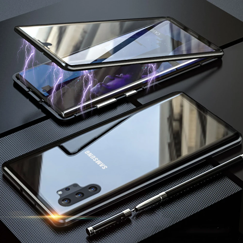 Закаленное стекло Магнитный адсорбционный чехол для Samsung Galaxy Note 10 металлический бампер жесткий HD стеклянный защитный чехол для Samsung Note 10 + 5G