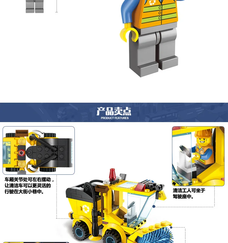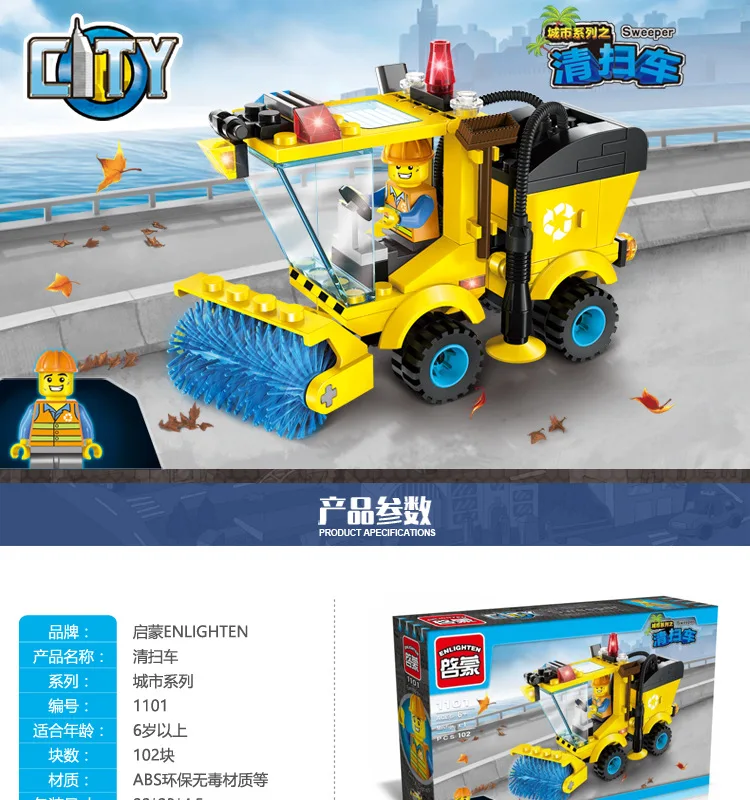 Образовательная городская уборочная машина yizhijie сборка пластиковая сборка мелкие частицы строительных блоков игрушки 1101 детские подарки