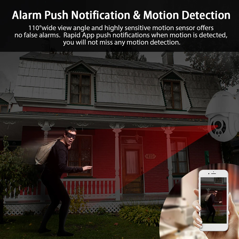 Широкий угол обзора и высокочувствительный датчик движения не оставляют ложных сигналов тревоги. Быстрое уведомление через приложение при обнаружении движения, вы не пропустите Обнаружение движения.