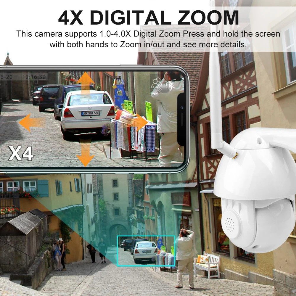 Вращение на 270 градусов PTZ, вертикальное вращение на 90 градусов и горизонтальное вращение на 270 градусов, вы можете управлять углом поворота камеры с помощью приложения.