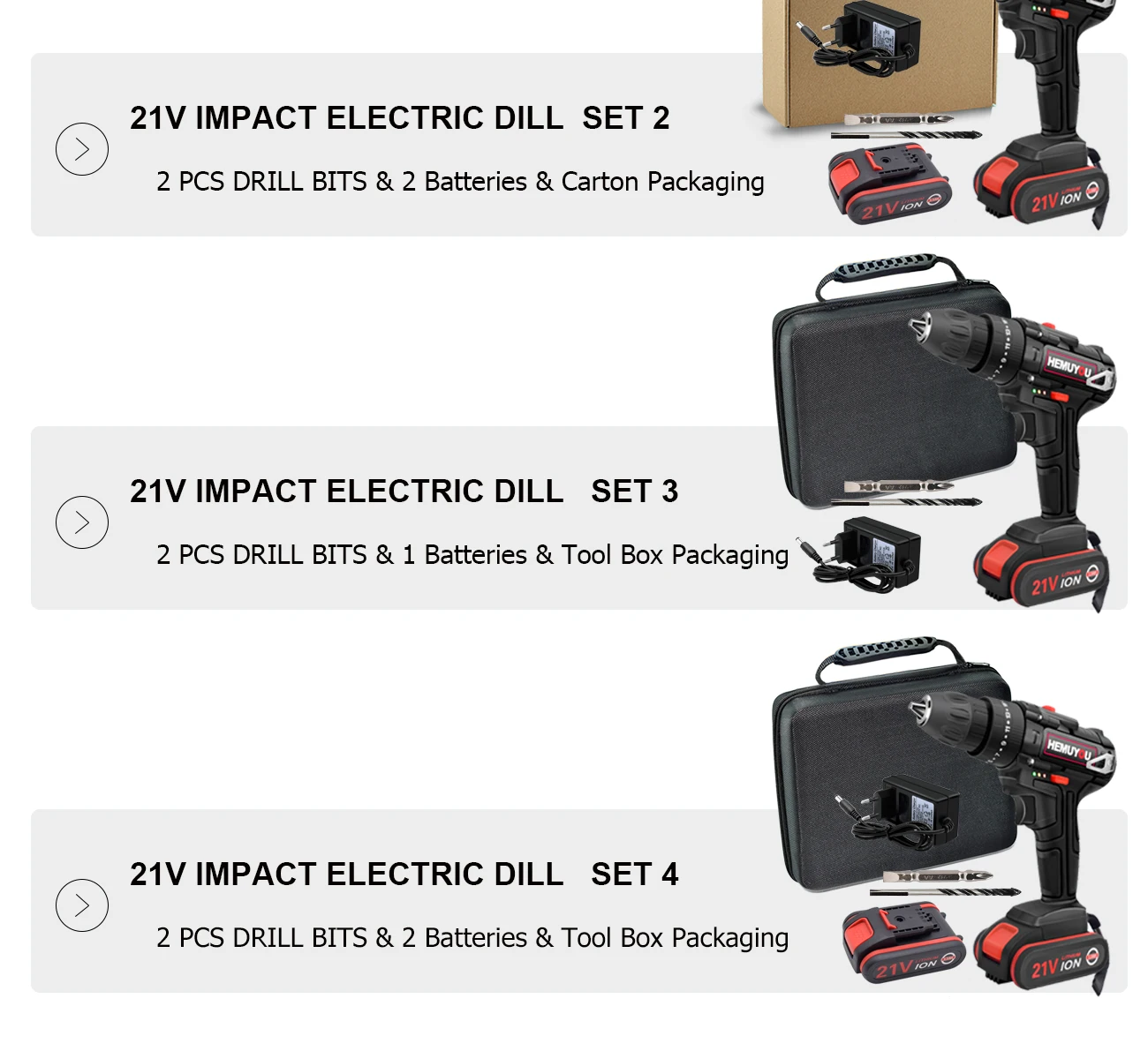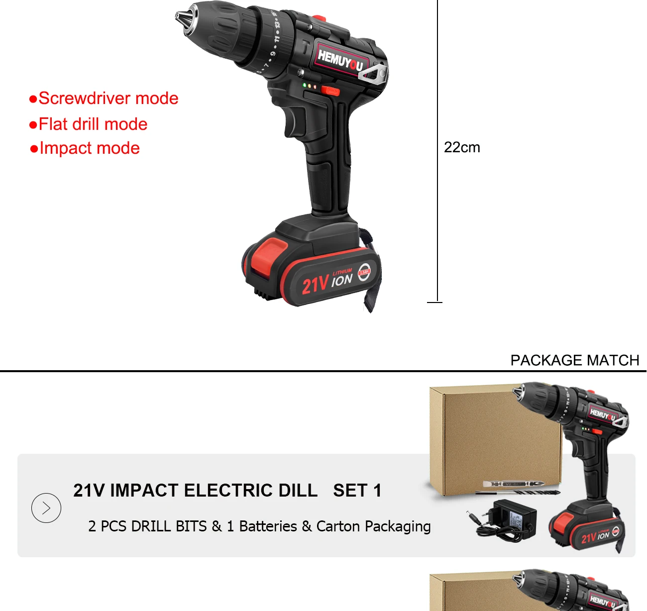 21 в Беспроводная отвертка домашняя перезаряжаемая Мини дрель Ударный Молоток дрель Электроинструмент + 3/8 дюйма 2 скорости