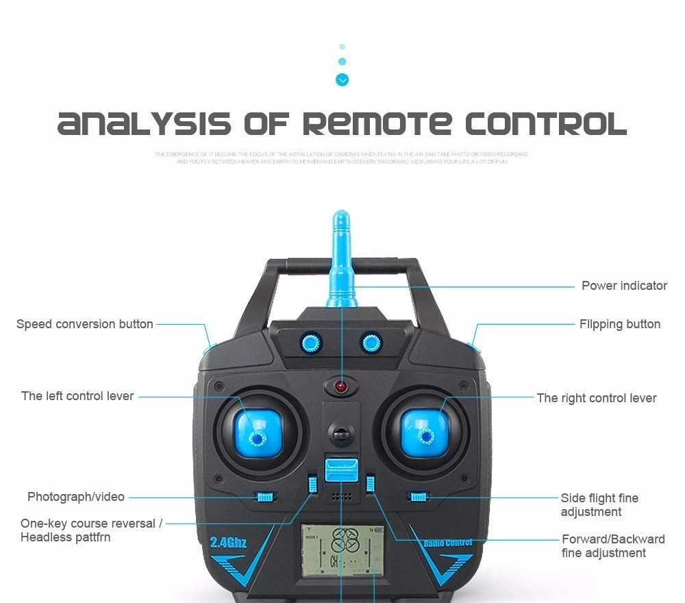 Водонепроницаемая воздушная рама, хорошая прочность. С безголовым режимом, не нужно менять положение самолета, прежде чем лететь Он имеет 6 оси гироскопа, который может иметь более стабильный полет и быть простым в управлении 4 канала, которые могут выполнять взлет, спуск, движение вперед, назад, левую боковую полет, праворукий полет и поворот на 360 ° Структура Модели делает пропеллеры более мощными и может противостоять сильному ветру Емкость аккумулятора составляет до 400 мА · ч, что обеспечивает более долгий полет Возврат одним нажатием кнопки функция позволяет легко найти дорогу домой Легкая воздушная рама, хорошая прочность Светодиодный светильник, возможно ночное время Высокоскоростная Аэробика Высокая скорость вращения Синхронное вращение 3D режим