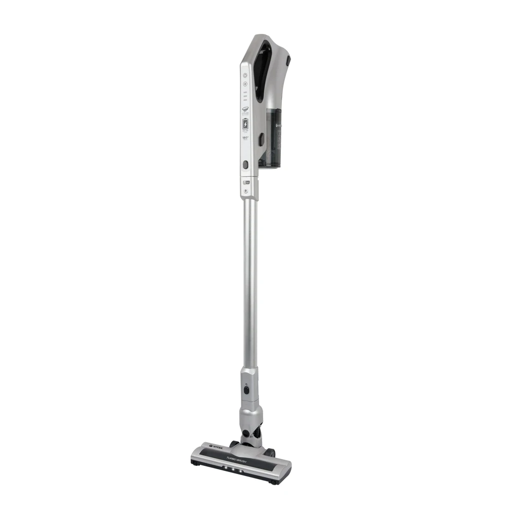 Компактный ручной пылесос VT-8119 работает от литий-ионной батареи с напряжением 22,2 В. Два режима работы позволяют выбирать мощность устройства в зависимости от ваших задач. На минимальных оборотах прибор работает 55 минут, на максимальных - 23 минуты. Для ковровых покрытий подходит электрощётка. Она имеет собственный двигатель, который, вращая насадку, эффективно справляется с грязью и пылью. Для чистки мебели, а также тканей предназначена деликатная комбинированная насадка. Благодаря встроенной четырехступенчатой системе фильтрации, а также наличию фильтра тонкой очистки HEPA, который задерживает мельчайшие частицы пыли и аллергены, воздух в вашем доме станет по-настоящему чистым и свежим. После окончания уборки вы можете поставить пылесос вертикально на специально предназначенное крепление.