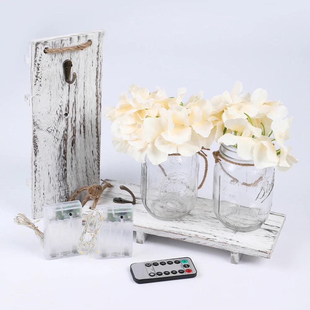 Посылка: 2 * банка Mason, 2 * цветы (54 9 # оранжег), 2 * гирлянда (2 м 20 лампа теплый белый), 2 * доска, батарея в комплект не входит