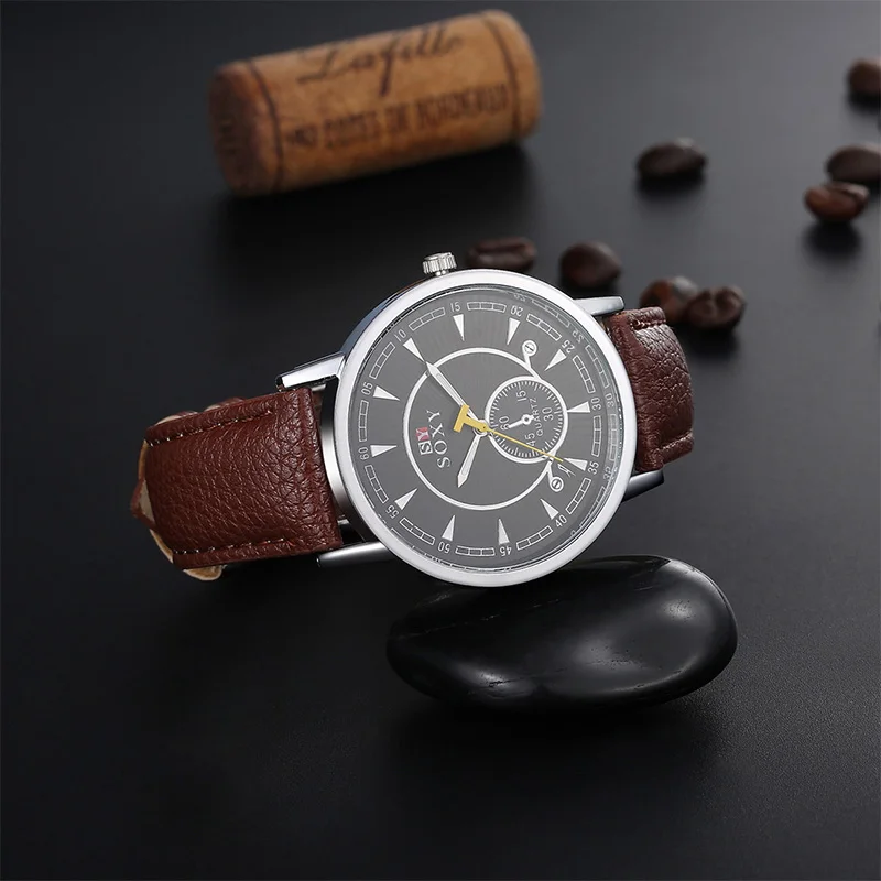 Высококачественные Брендовые Часы SOXY новые кварцевые мужские часы Brife модные стильные роскошные кожаные часы Элегантные наручные часы relojio хит продаж!