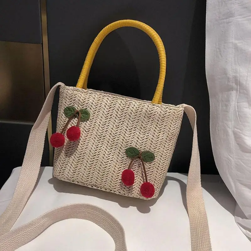 Соломенная Клубничная женская сумка Модная трикотажная пляжная Праздничная сумка через плечо сумки