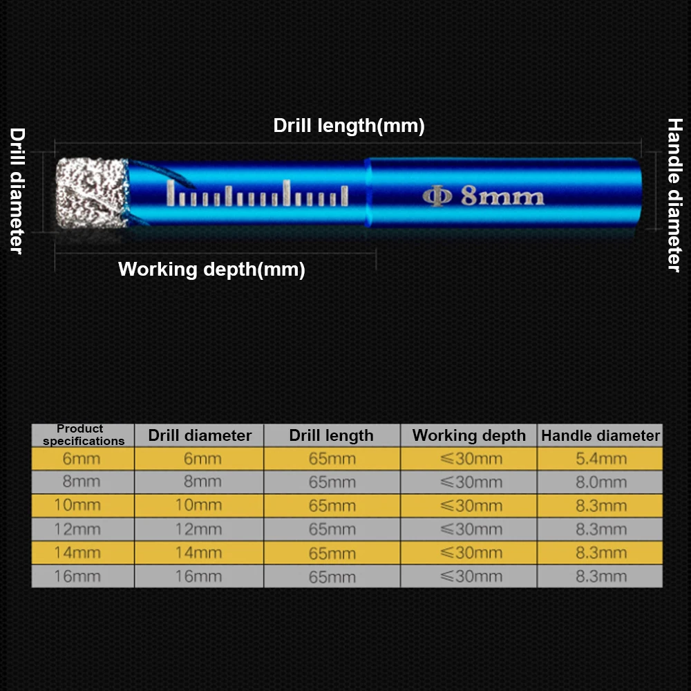 Диаметр отверстия: 6 мм, 8 мм, 10 мм, 12 мм, 14 мм, 16 мм