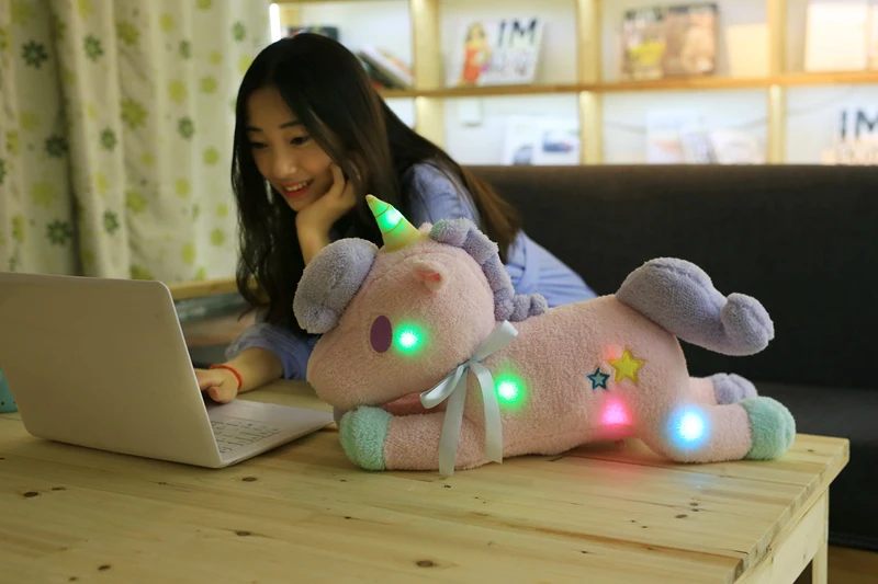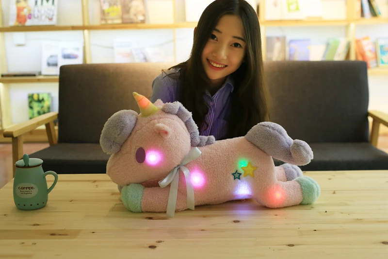 1 шт. 55 см плюшевые подушки единорога яркий плюшевый светильник животного Новая интеллектуальная игрушка для диалога Единорог Подушка игрушка