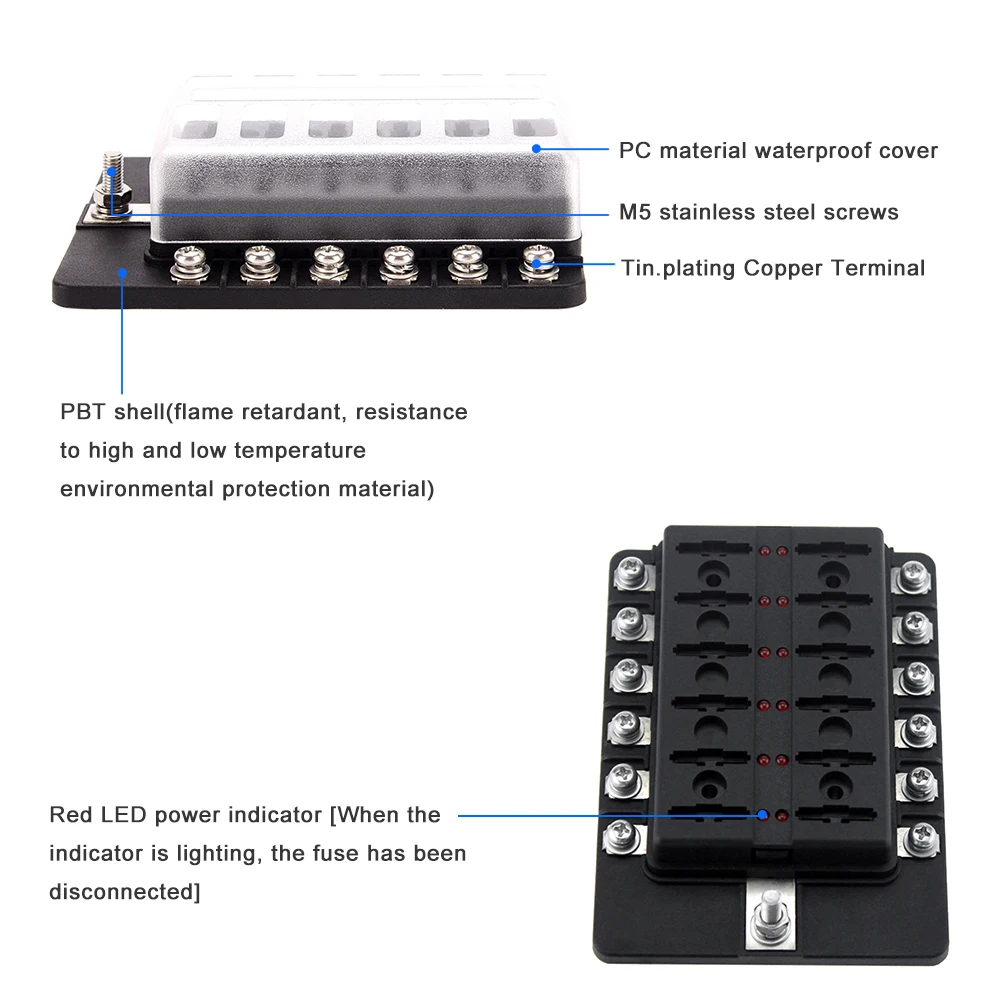 12 блок предохранителей держатель с 10A, 15A, 20A, 25A, 30A предохранителями.