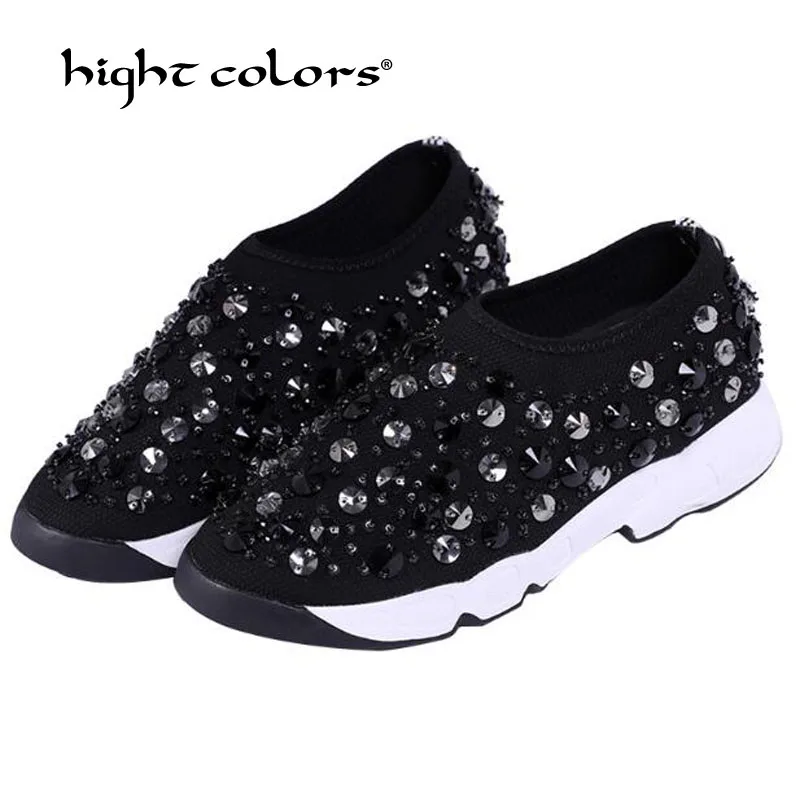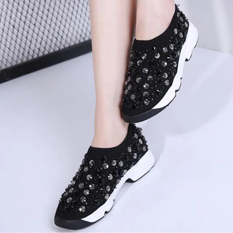 Шикарные кроссовки со стразами; женская обувь; роскошная женская Повседневная дышащая обувь с жемчугом; женская обувь на плоской платформе со стразами; T-814 на плоской подошве