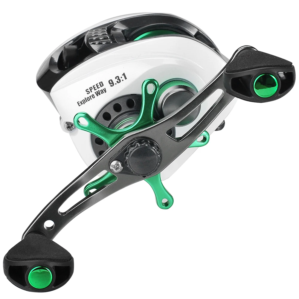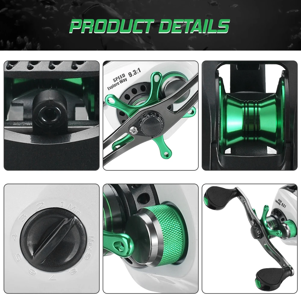 Этот литье затравки Рыболовная катушка имеет 10 + 1 шарикоподшипники и 9,3: 1 супер высокая скорость Передаточное отношение, что делает ее мощным рыболовные снасти для любителей рыбной ловли.