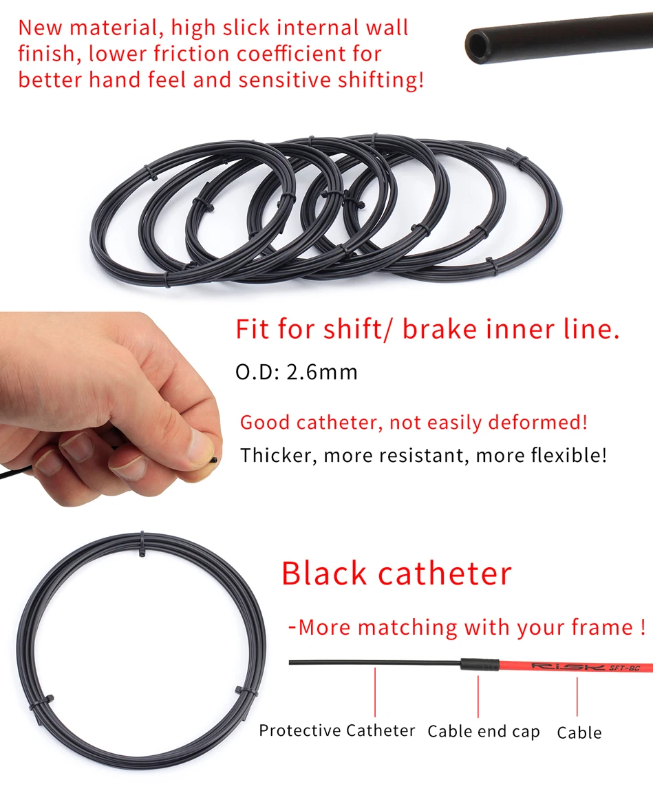 Подходит для внутренней линии переключения/тормоза. 0.D: 2. 6 мм Хорошая катетер, почти не деформируется! Возможно изготовление утепленного варианта модели более устойчивыми, улучшает гибкость провода! Черный катетер ---- больше соответствует вашей оправе! Защитный мочевой катетер Кабельная крышка Кабель