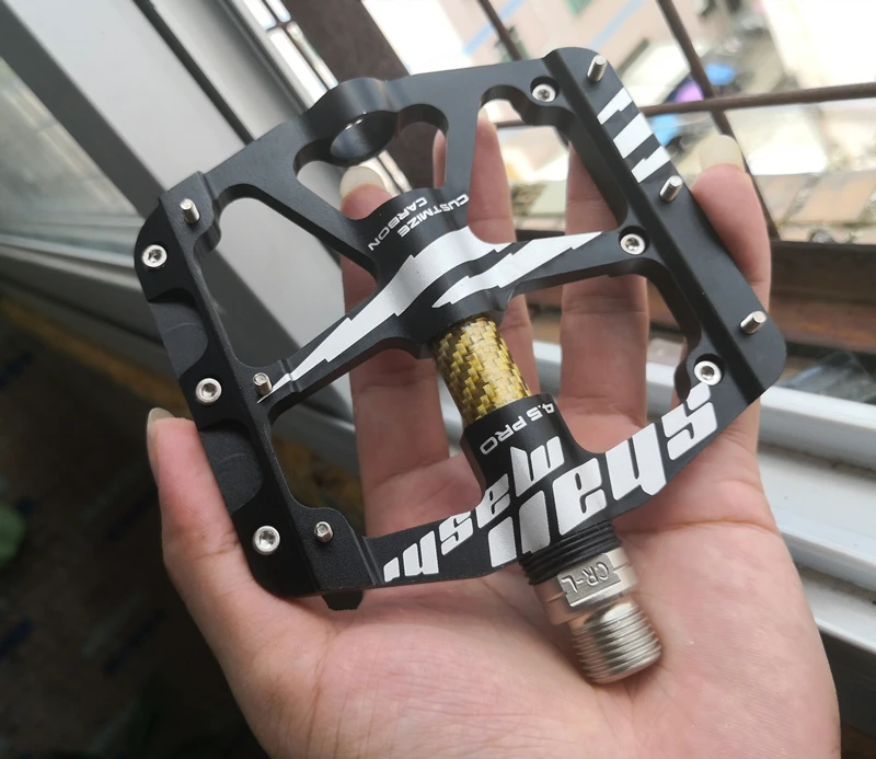 Новинка 2019 4.5Pro Углеродные педали Лучшая педаль для велосипеда 4,5 pro Его низкопрофильный дизайн-светильник (350 г/пара) и прочная конструкция хромированных слитков с ЧПУ и алюминиевых композитных платформ. И чтобы убедиться, что ваша обувь всегда имеет невероятное сцепление, на каждой стороне платформы есть шесть контактов, а углеродное волокно в педалях является легким, чтобы максимизировать сцепление. Платформа большого размера обеспечивает дополнительное сцепление и больше комфорта.