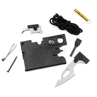 Особенности: 1. Тоньше, дизайн карты, больше подходит для использования на открытом воздухе 2. Толщина всего 5 мм, легко помещается в кошелек, это наиболее удобное сочетание инструментов для улицы 3. 9 видов повседневной функции: зубчатый наконечник, открывалка для бутылок, компас, увеличительное стекло, масштаб, маленькая шлицевая отвертка, большая шлицевая отвертка, пинцет, маленькая зубочистка 3. Закаленная нержавеющая сталь, которую можно легко отрезать веревки, мясо и т. д. 4. 8X лупа, подходит для наблюдения за тонкими предметами 5. Конструкция крышки компаса, точность, чем пластиковые продукты Характеристики: Размер в сложенном виде: 84x56x5 мм Цвет: черный Посылка в комплекте 1x9 в 1 многофункциональный инструмент