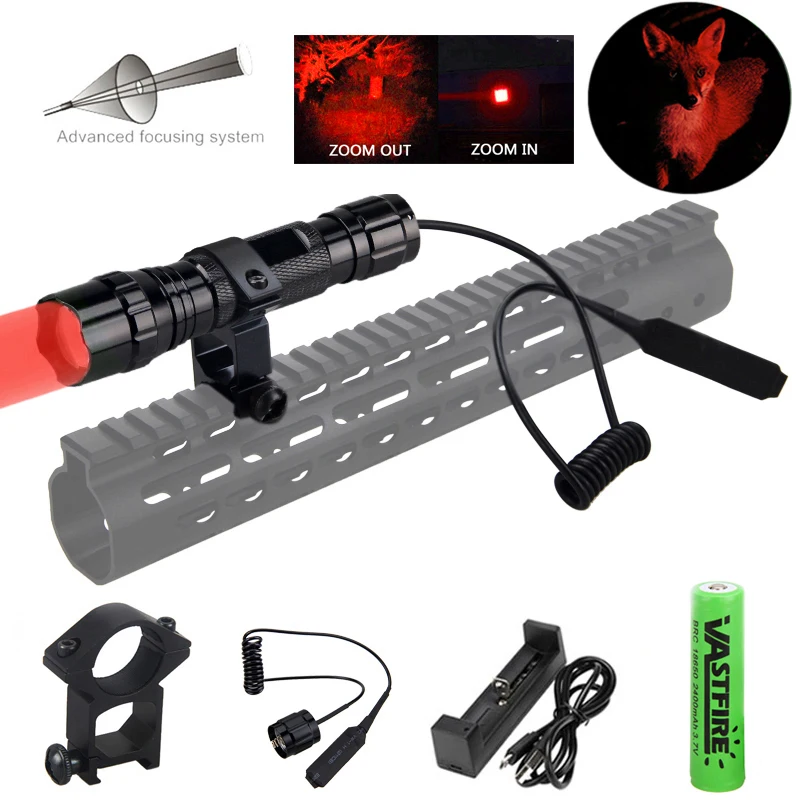 -350 люменов нефильтрованный красный светильник на выходе, произведенный Cree зеленый или красный светодиодный -300 ярдов яркий и сфокусированный красный луч, который поможет вам найти вашу игру на расстоянии, не беспокоя их. Фонарик Технические характеристики: -Материал: 6061T алюминий -Лампа: красный светодиодный излучатель макс. выход 250 люменов -Светильник: красный -Расстояние освещения: 300 ярдов -Режимы: 1 -И возможностью регулирования интенсивности и дальности свечения -IPX4 из водонепроницаемого материала Перегрузок по току: 1.5A -Работать Напряжение: 3,7-4,2 V -Аккумуляторы: 1 литий-ионный аккумулятор 18650 (не входят в комплект) -Цвет корпуса: черный -25,4 мм диаметр корпуса в целом Длина в закрытом положении: