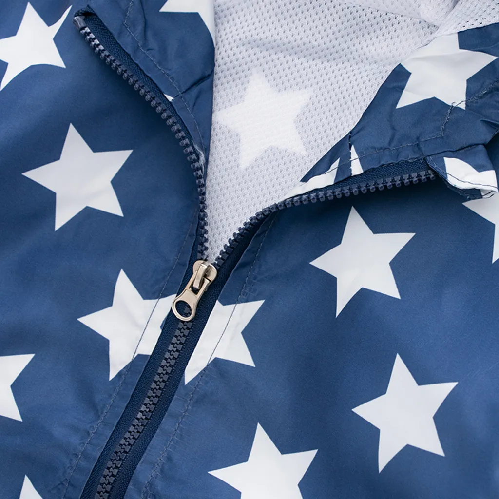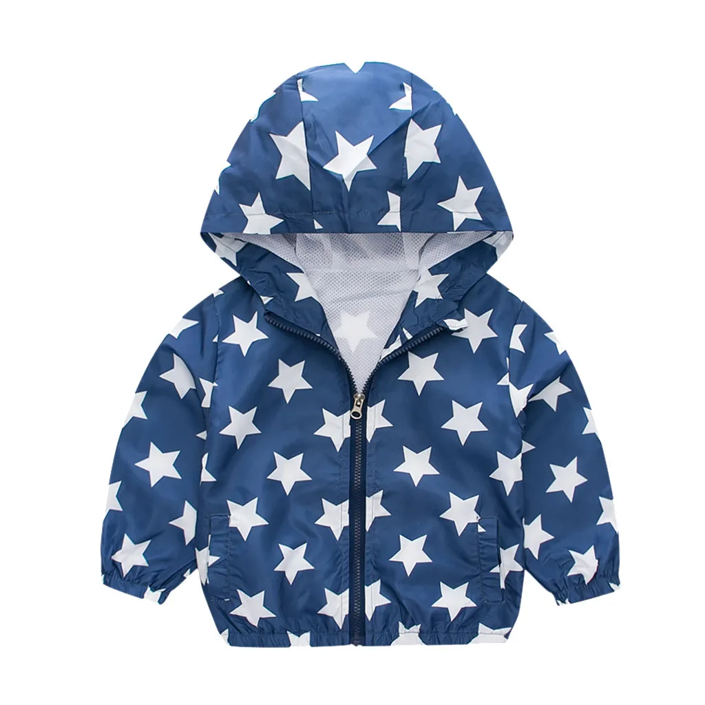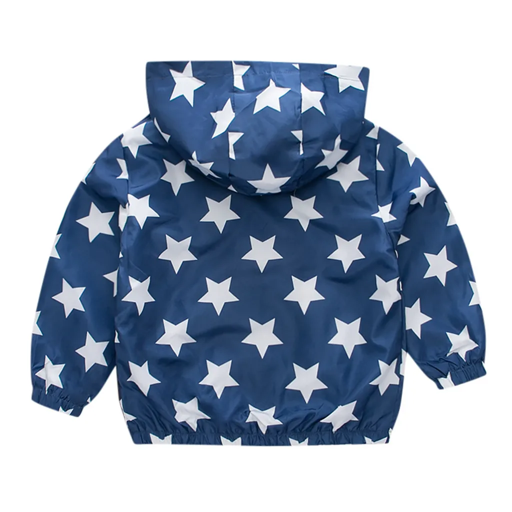 Ветрозащитное пальто с длинными рукавами и принтом автомобиля и звезды для маленьких мальчиков и девочек верхняя одежда с капюшоном