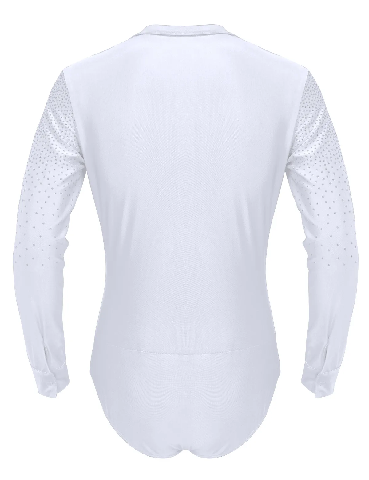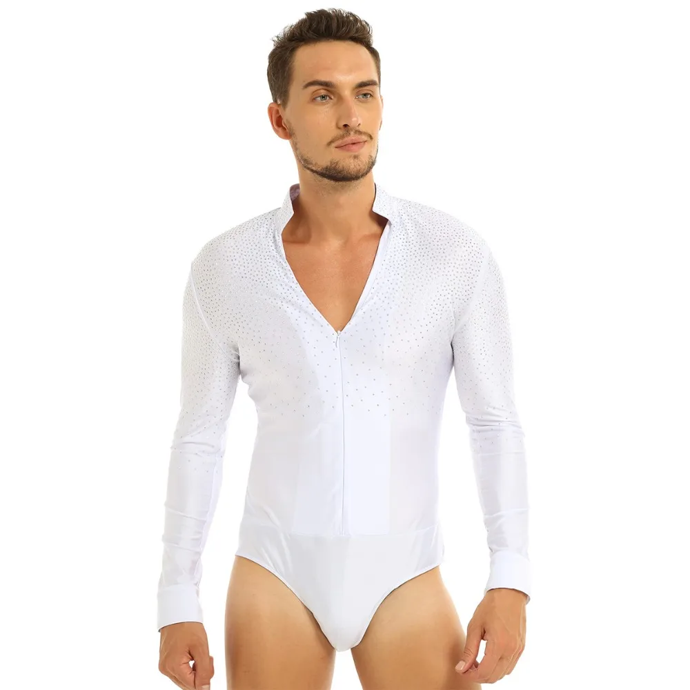 Мужские цельнокроеные бальные костюмы для латиноамериканских Танго Румба танцевальные трико для танцев с рубашкой боди рубашки топы, хорошая эластичная ткань.