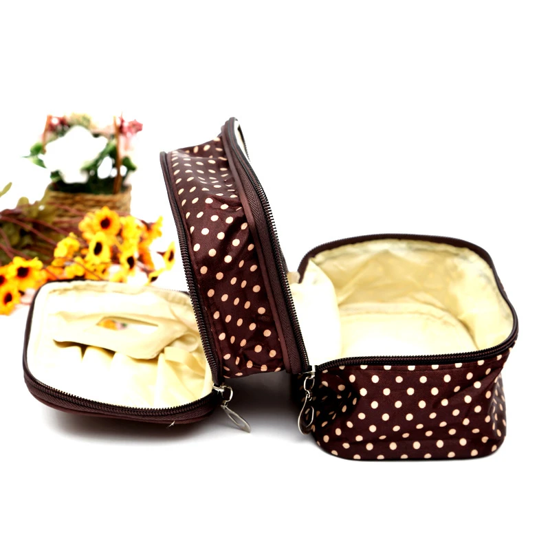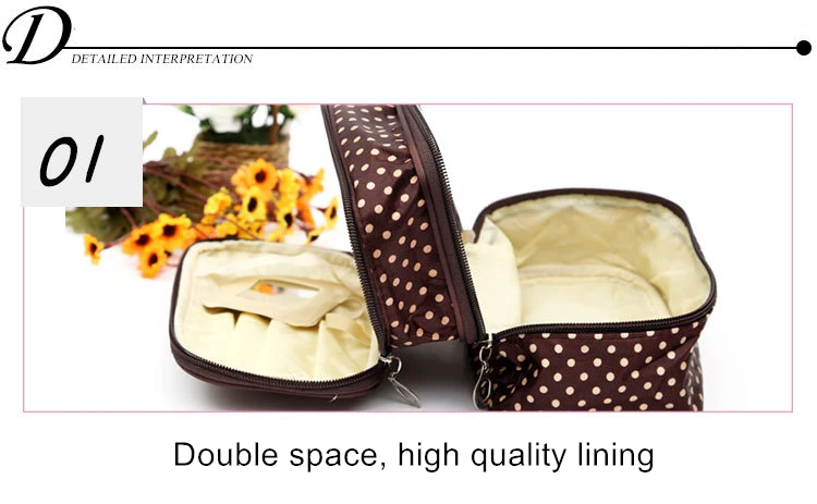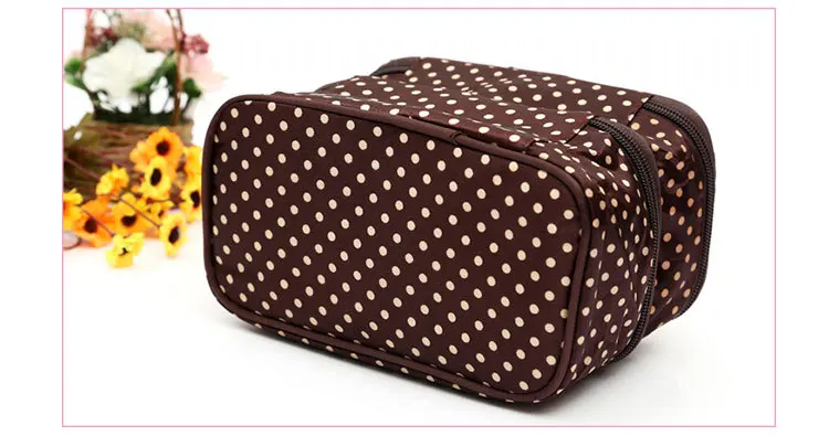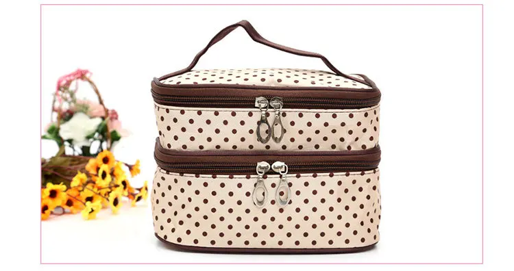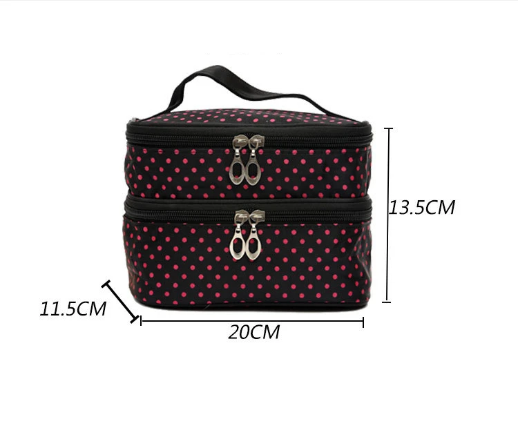 Дорожные аксессуары, модная косметичка в горошек, Женская двухслойная косметичка, сумка для хранения косметики, профессиональная сумка для визажиста