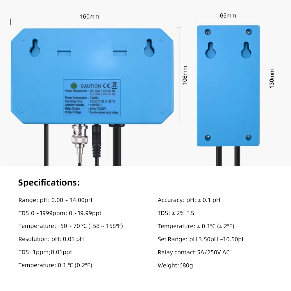 Это устройство контроля pН/температуры/TDS 3-в-1 качества воды, что джойстик имеет рн и температуры & TDS tri дисплей и pH управления, который может одновременно измерять и отображать устройство контроля pН/значение температуры и полные растворенные Твердые тела (TDS). Он имеет электрод BNC (pH) и 1 выходное гнездо питания. Ph-электрод является съемным и может быть заменен в любое время. С релейный выходной разъем питания, вы можете подключить ваш собственный 110V/220V оборудование, как, например, воздуховыпускное отверстие камень, кислород, женские туфли-лодочки, двуокись углерода регуляторы, электромагнитные клапаны и других pH контрольных устройств. Просто установите желаемое значение Hi/Low pH в контроллере. Если значение pH, измеренное в настоящее время, ниже установленного значения, оно откроет устройство. Если измеренное значение выше установленного значения, оно закроет устройство. Подходит для аквариумного бассейна, без почвы, лаборатории и окружающей среды. 1. Широко используется для проверки pH/температуры/TDS (всего растворенных твердых веществ) воды. 2. С релейной выходной розеткой, вы можете контролировать значение pH в соответствии с вашими требованиями. 3. Вы можете легко и быстро заменить предохранитель с внешней заменой. Съемный и сменный рН-электрод. 4. С вилкой питания для выхода воздуха, кислородных насосов, регуляторов углекислого газа, соленоидных клапанов и других устройств контроля pH. 5. Протестируйте TDS с обоих PPT и PPM единиц по желанию. 6. Простая калибровка pH/TDS с помощью мини-отвертки и автоматической компенсации температуры. Четкий ЖК-дисплей с подсветкой, 3 Результаты отображаются одновременно. Простота в использовании и мгновенное отображение результатов. 7. Проверка температуры в ° / ° (переключаемые единицы измерения) и возможность онлайн-мониторинга и контроля pH в течение длительного времени. 8. Применяется в водных источниках, беспочвенном выращивании, аквариуме, гидропонике, лаборатории, спа, окружающей среде, бассейнах, системах очистки воды и т. д.