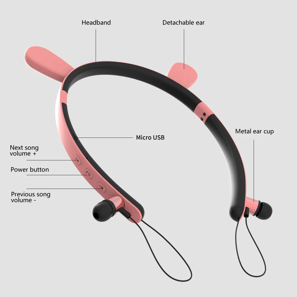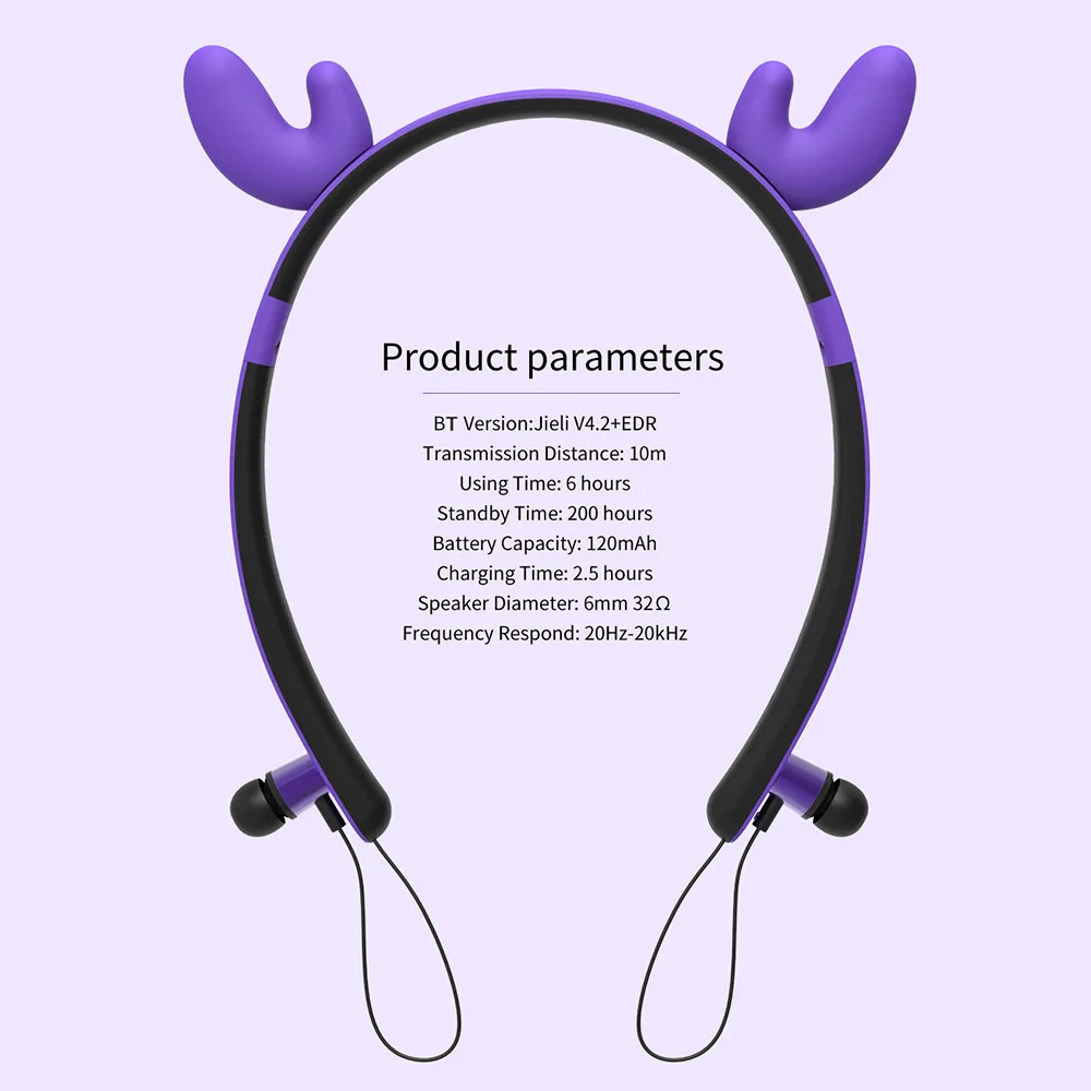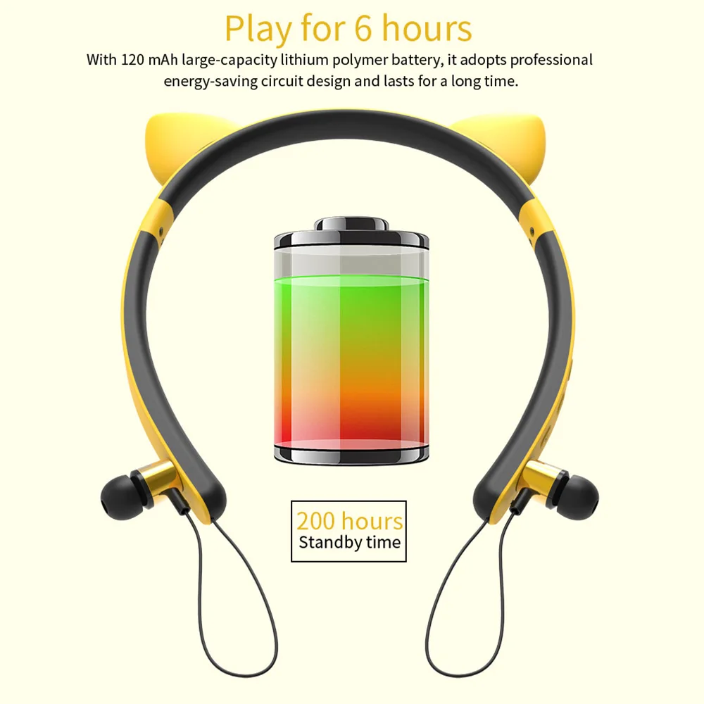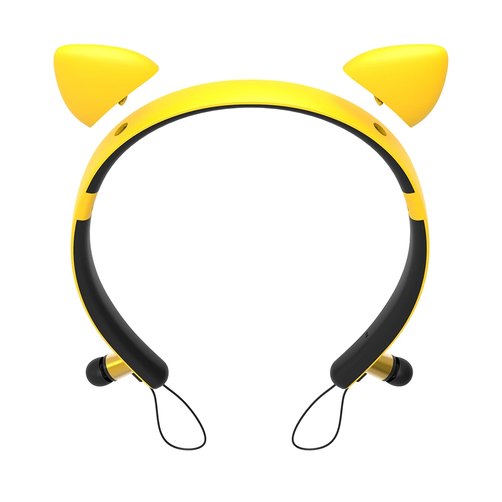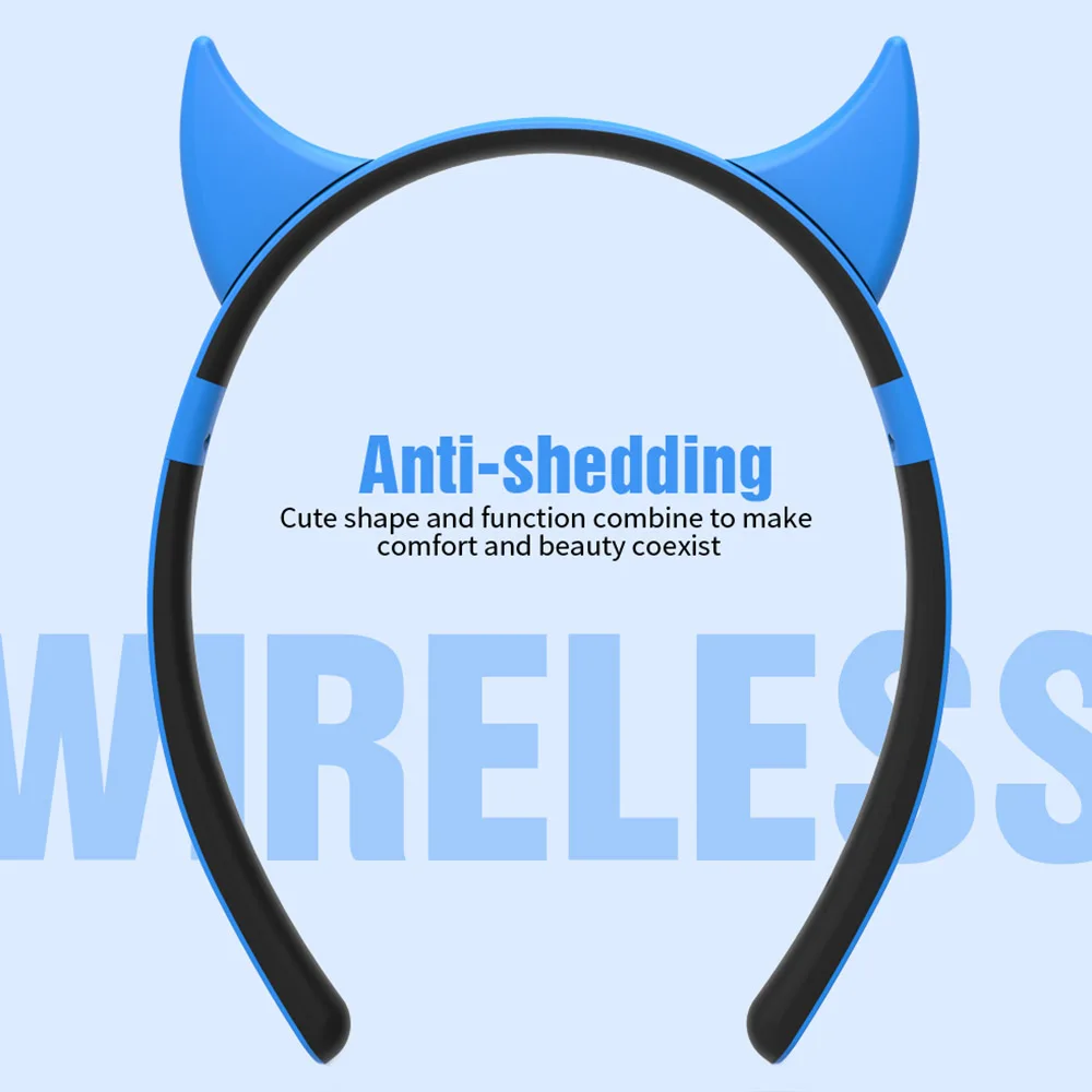 Это стереогарнитура BT, которая более удобна в использовании в беспроводном дизайне и подходит для работы и спорта. Магнитная конструкция позволяет подключать затычки для ушей к рамке наушников, а высококачественный материал выбирается для наушников с защитой от пота. Есть 4 модели, милые формы кота, оленя, дьявола, кролика, в красивой моде.