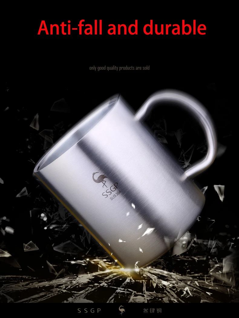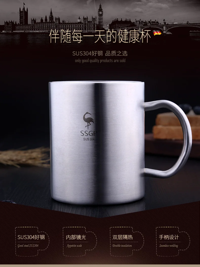304 нержавеющая сталь кофейная кружка 500 мл двухслойная антиобжигающая чашка Питьевая пивная вода чайное стекло анти-осенний металлический дорожный стакан