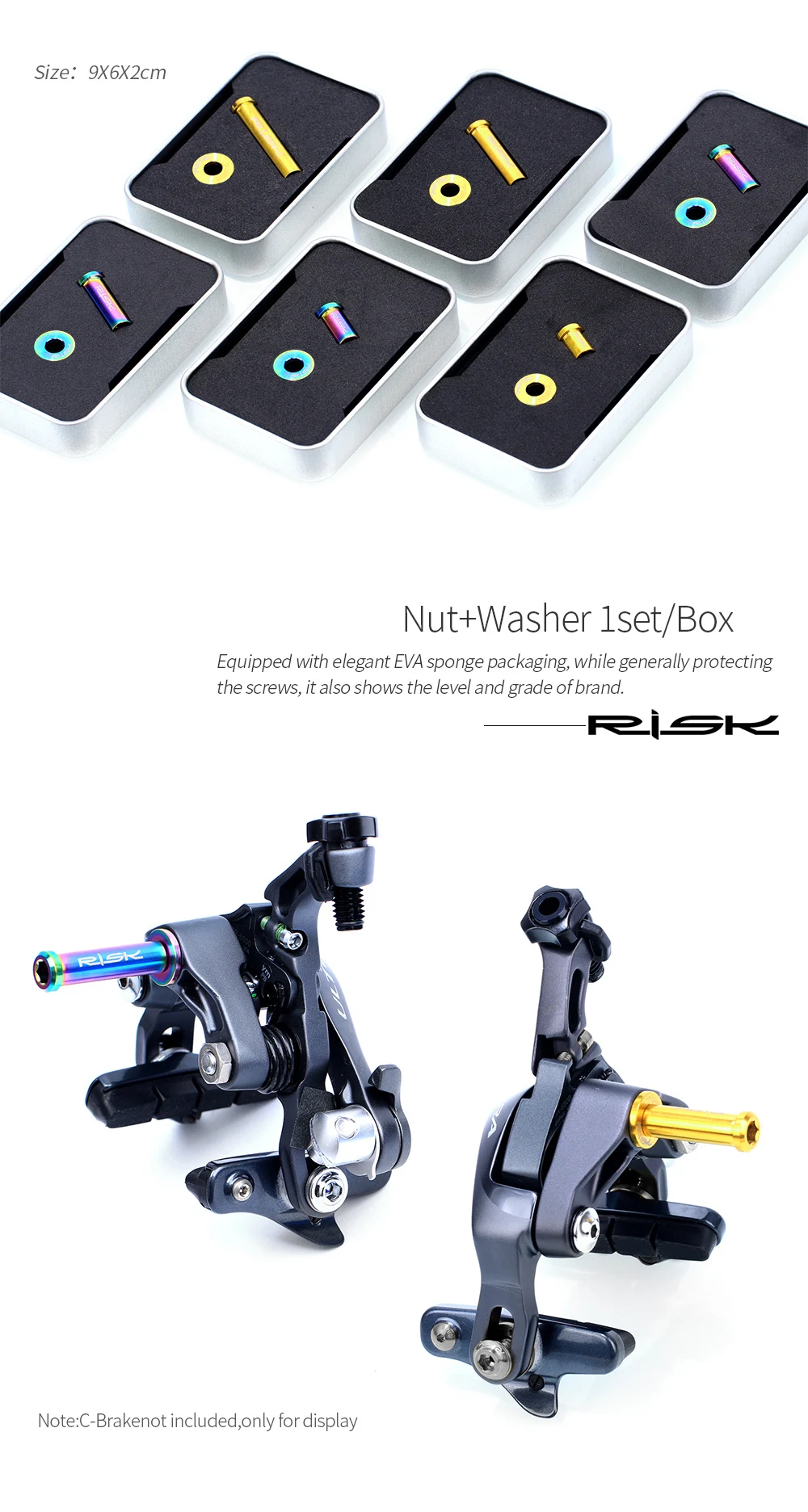 Размеры: 9X6X2cm Гайка + шайба lset/коробка Оснащен элегантной упаковкой EVA губки, в то же время, как правило, защищает винты, он также показывает уровень и класс бренда. Примечание: C-Brakenot включен, только для отображения