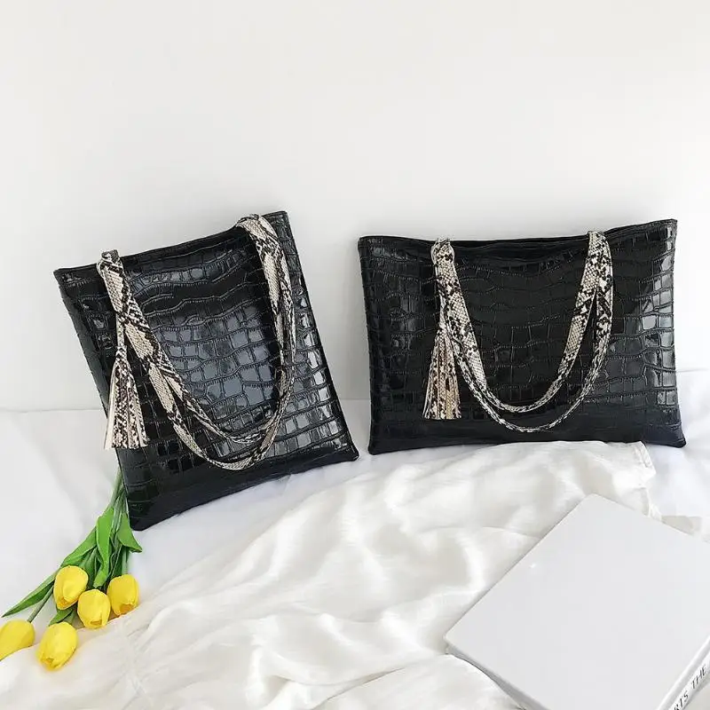 Женские сумки на ремне со змеиным принтом; большие вместительные сумки с короткими ручками; Повседневные Сумки из искусственной кожи с каменным узором; сумки для покупок