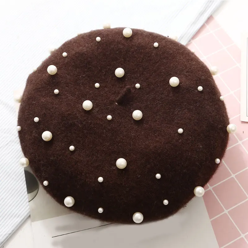Женский осенне-зимний берет с жемчужинами и заклепками, винтажная кашемировая мягкая теплая шапка