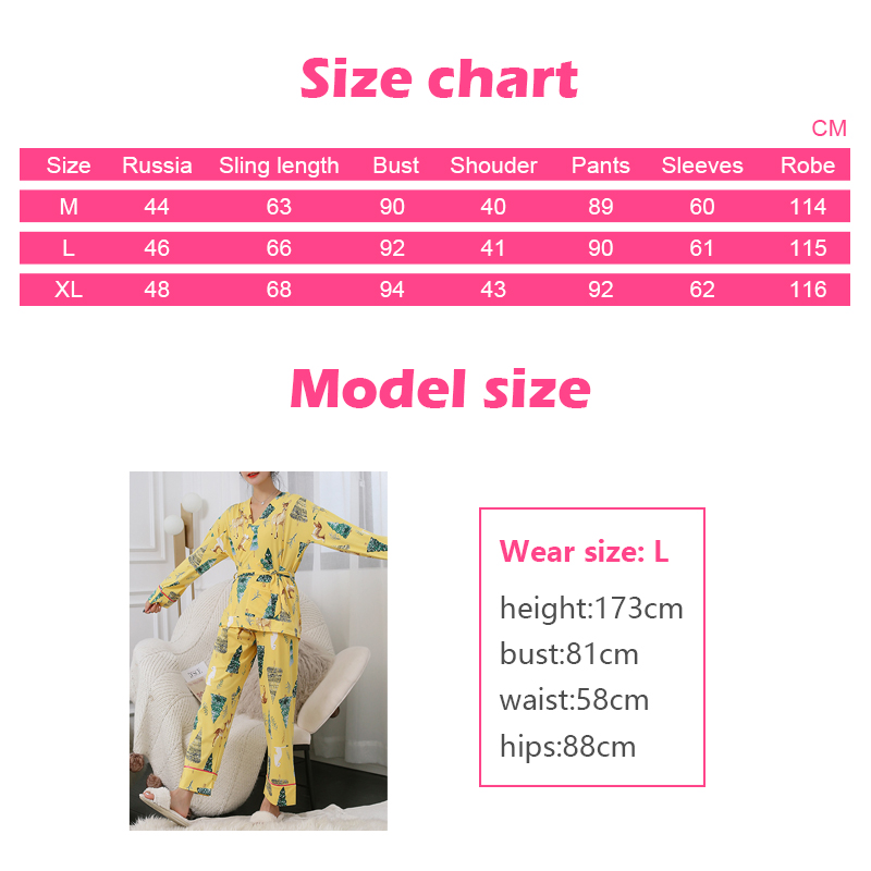 Здравствуйте! Добро пожаловать в наш магазин! Мы поддерживаем дрошиппинг и оптовую продажу, дополнительную скидку и подарок-сюрприз, пожалуйста, свяжитесь со мной! Качество на первом месте и самый лучший сервис. Все покупатели — наши друзья. Информация о продукте выглядит следующим образом: Модный дизайн, 100% новый бренд, высокое качество Материал: полиэстер Цвет: желтый Стиль: шелковые пижамы с принтом для женщин Размер: M, L, XL, 2XL Посылка включает в себя: 1 Женский пижамный комплект (топ и штаны) + 1 пояс + 1 маска для глаз Примечание: 1. Замеры сделаны вручную, поэтому возможны отклонения на 1-2 см. 2. Пожалуйста, обратите внимание на то, что размеры s светильник разница в цвете, это может быть связано с положением источника светильник и с настройками экрана.