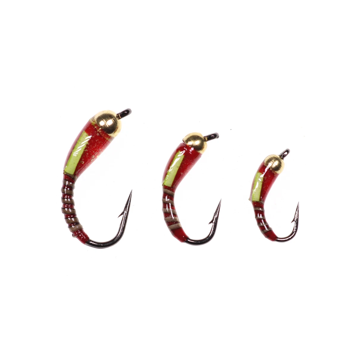 Bimoo 6PCS Brass Bead Head Peacock Herl Ribbed Buzzer Fly Red Trout Nymphs Fly Fishing Flies Lure Size #10 #12 #14