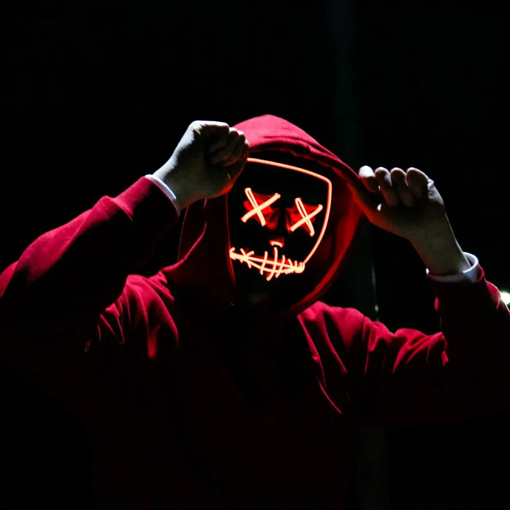 [★Безопасно носить]-изготовлен из высококачественного ПВХ и EL холодного света провода, нет низкого запаха пластика и тепла, когда он работает, так что вы можете чувствовать себя свободно носить. [★Батарея работает]-принимает 2 батарейки AA для обеспечения питания маски Хэллоуина, удобно быстро заменить батареи, когда он истекает из мощности, что делает его в состоянии постоянно работать. [★Регулируемый ремень на голову]-может быть растянут, чтобы идеально поместиться на лицо детей или взрослых, убедитесь, что он не будет двигаться или падать. [★3 режима освещения]-включает в себя стабильную, медленную вспышку и быструю вспышку, позволяет менять режимы, чтобы реализовать разнообразие света, избегая погружения в один режим. [★Самая крутая маска для вечеринок]-может использоваться в любых случаях, таких как Хэллоуин, Рейв, вечеринки, дискотеки, клубы, дни рождения, маскарада, фестивали, Костюмные вечеринки, карнавал и так далее.