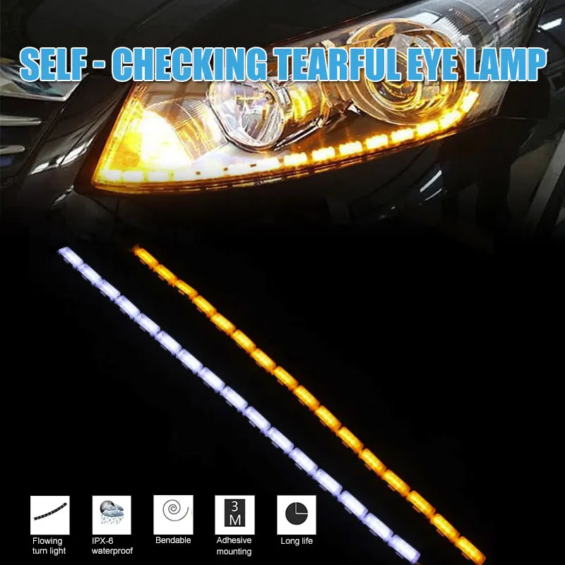 2 шт. DRL светодиодный фонарь для автомобиля Гибкая полоса слеза ангела переключатель сигнала поворота для глаз двойной цвет белый желтый функция