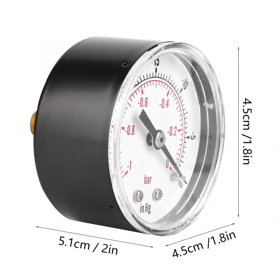 Вакуумный датчик, 50 мм 1/8 BSPT обратное соединение-1-0Bar -30-0inHg Air Water Oil Gas