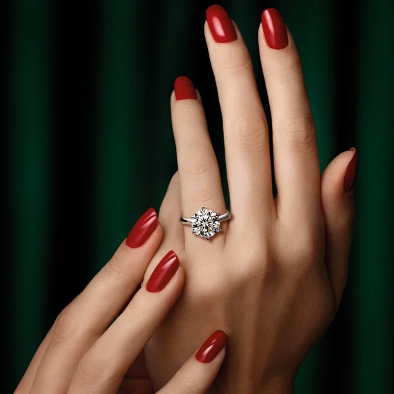 Огромные роскошные кольца 5,0ct Moissanite, 18K, Настоящее Белое, одноцветное золото, свадебные кольца, предложения, кольца для женщин, невесты, девушек, ювелирные изделия с бриллиантами
