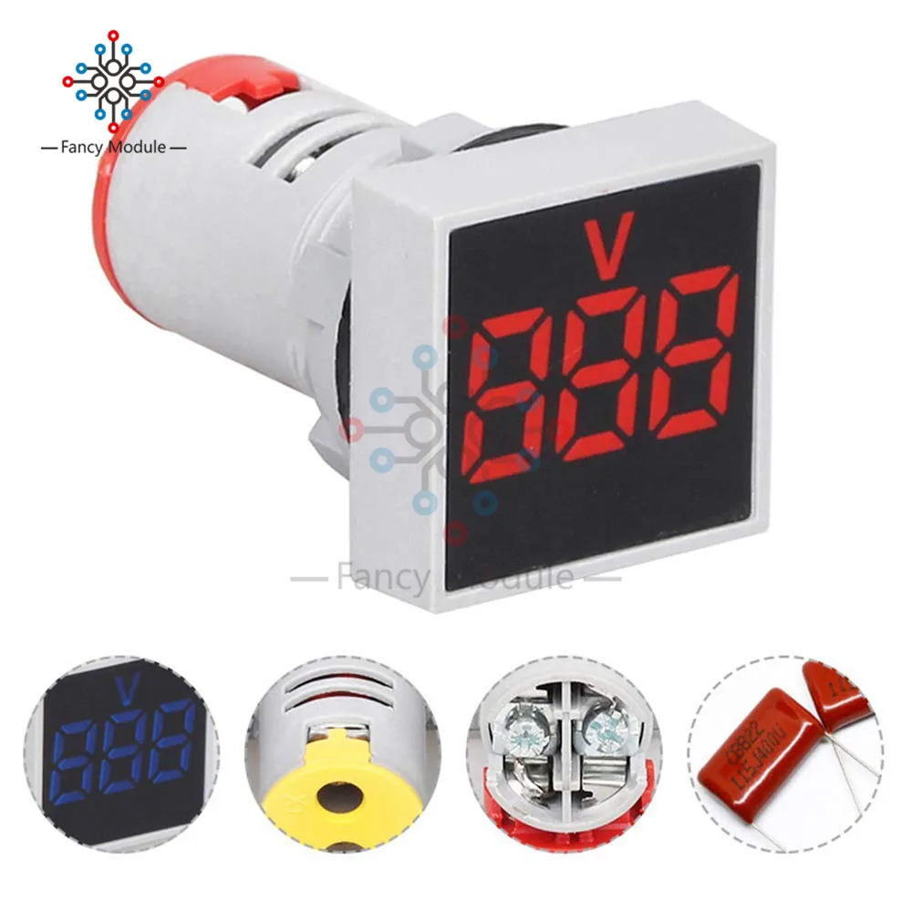 [22 мм квадратная панель вольтметр переменного тока 20-500 В]
