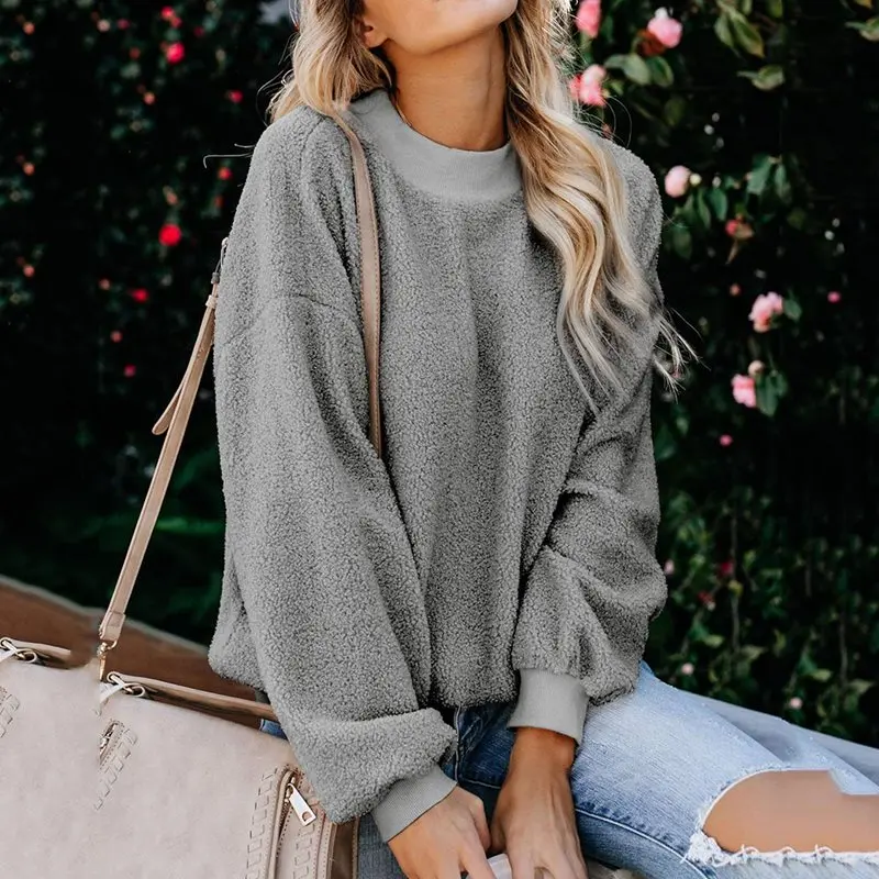 Зимние 2019 Для женщин вельветовые худи топы свободного кроя с длинным рукавом пуловер, Свитшот Тедди сплошной цвет густой шерсти толстое теплое повседневное пальто с капюшоном