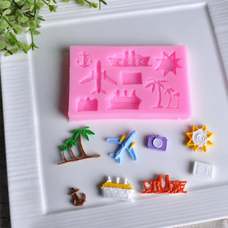 Аэроплан пальмовое дерево солнце плесень помадные торты украшения инструменты, силиконовые формы сахарный шоколадный выпечки инструменты торты Gumpaste форма
