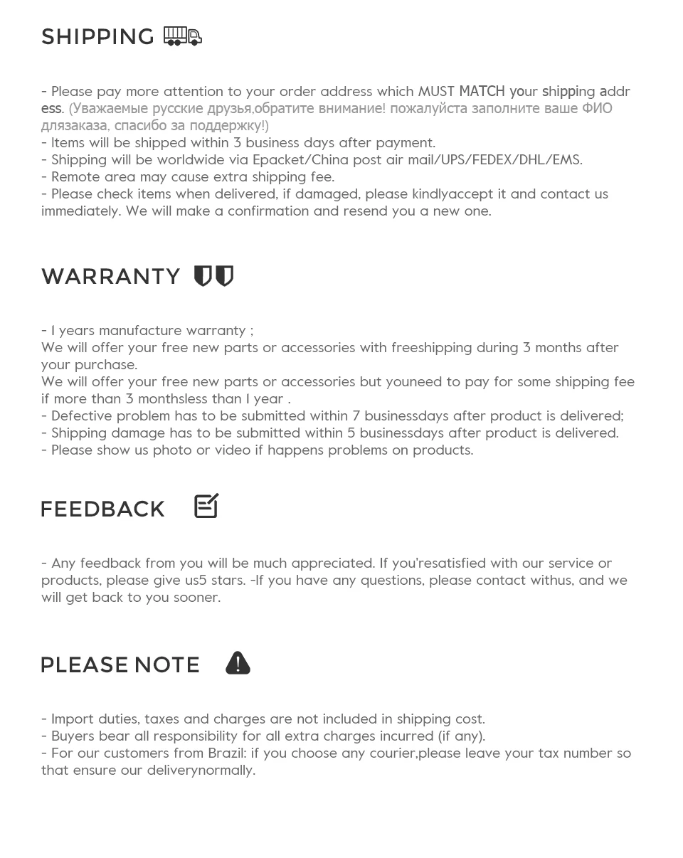 * Вы можете вернуть товар без объяснения причин в течение 15 дней с момента получения.