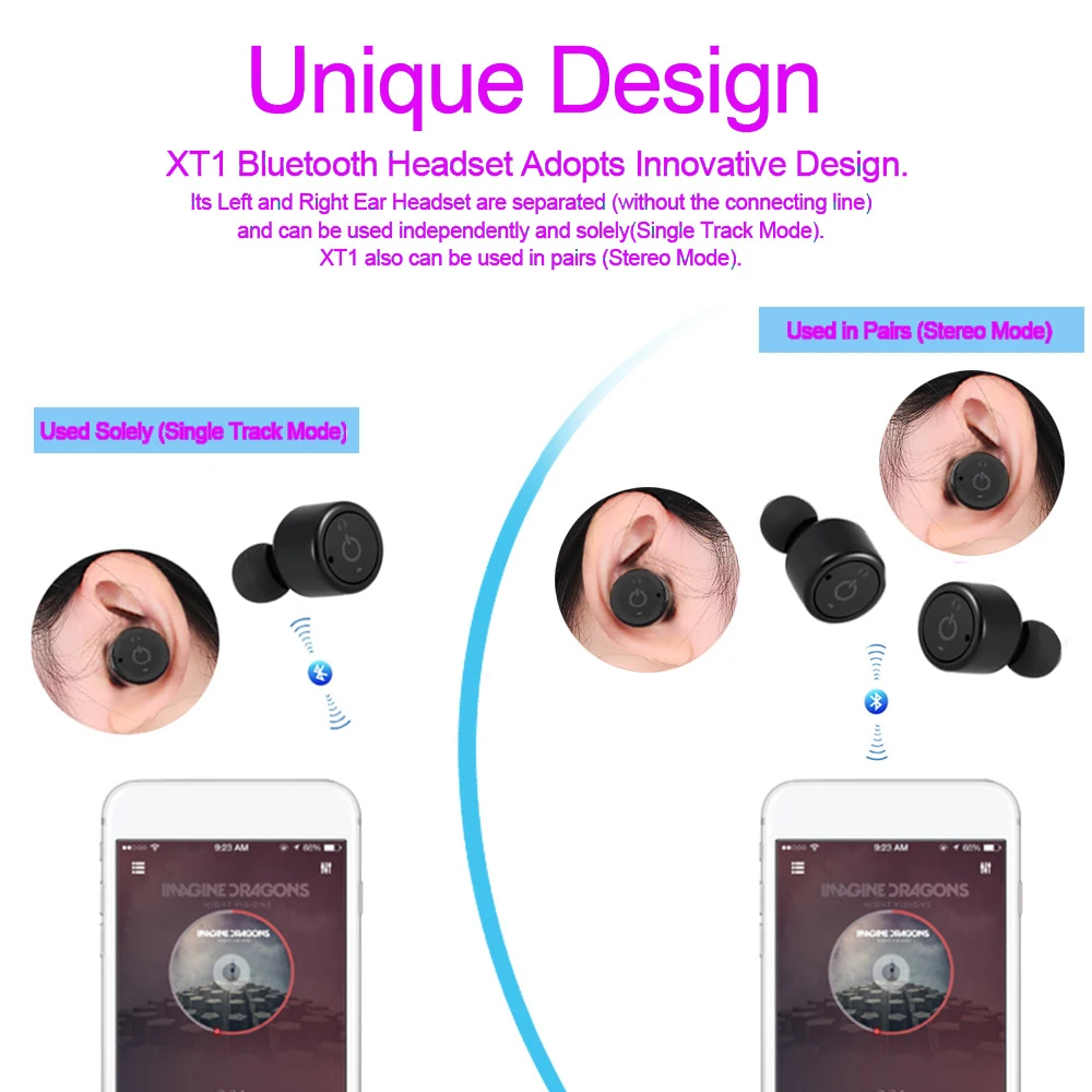 Mini Wireless Bluetooth Headset Wireless Earphones with Mic for Mobile Phone Earbuds Twins Stereo CSR Headphones(15-40)