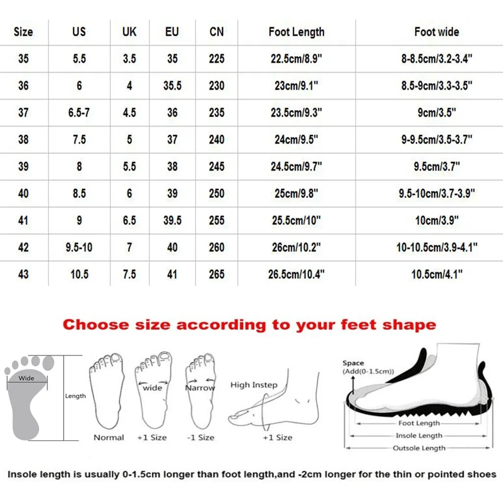 Полезные советы:Различные стили обуви, пожалуйста, выберите размер в соответствии с вашим типом стопы