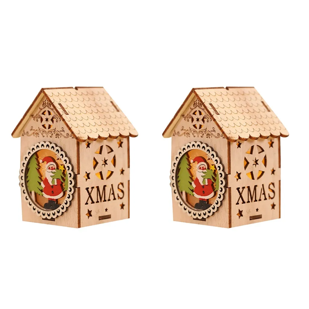 LED Light Wood House Cute Christmas Tree Hanging Ornaments Holiday Decoration