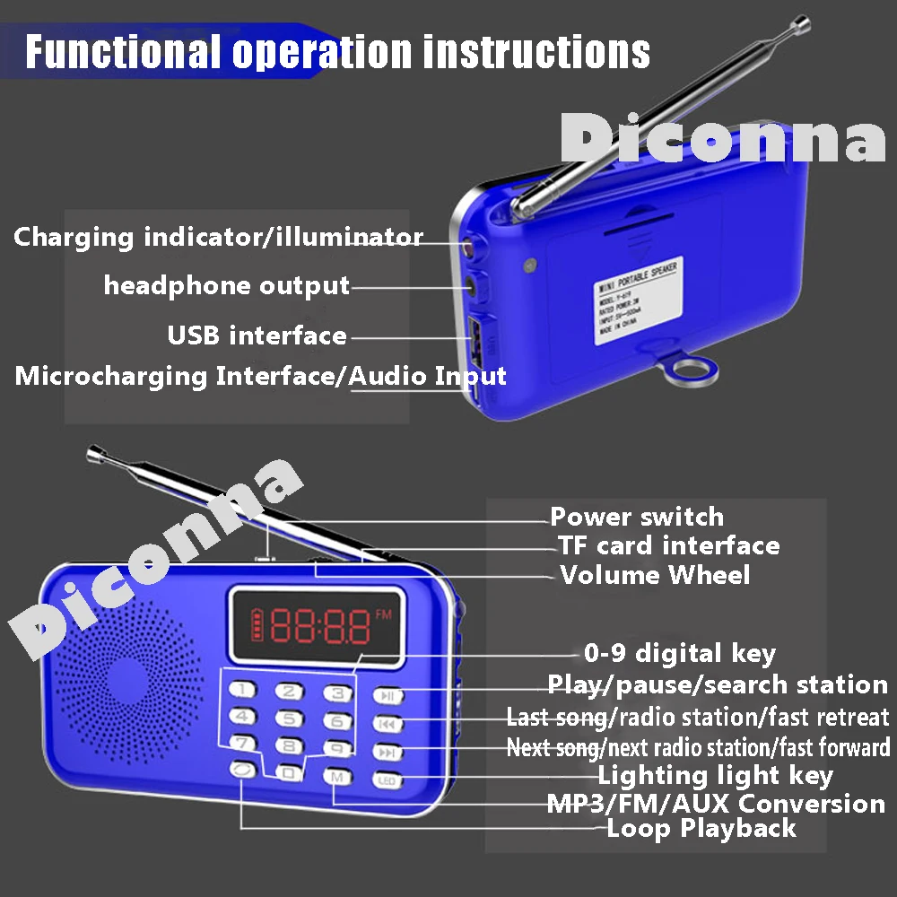 Портативная Радио FM MP3 AUX SD TF карта + USB воспроизведение петли Особенности: