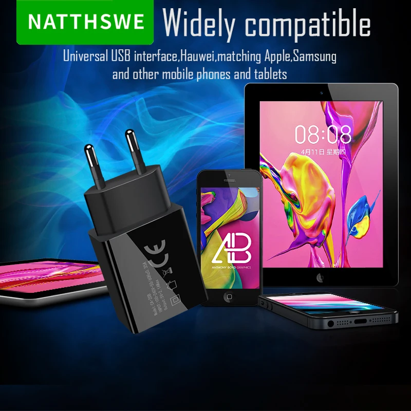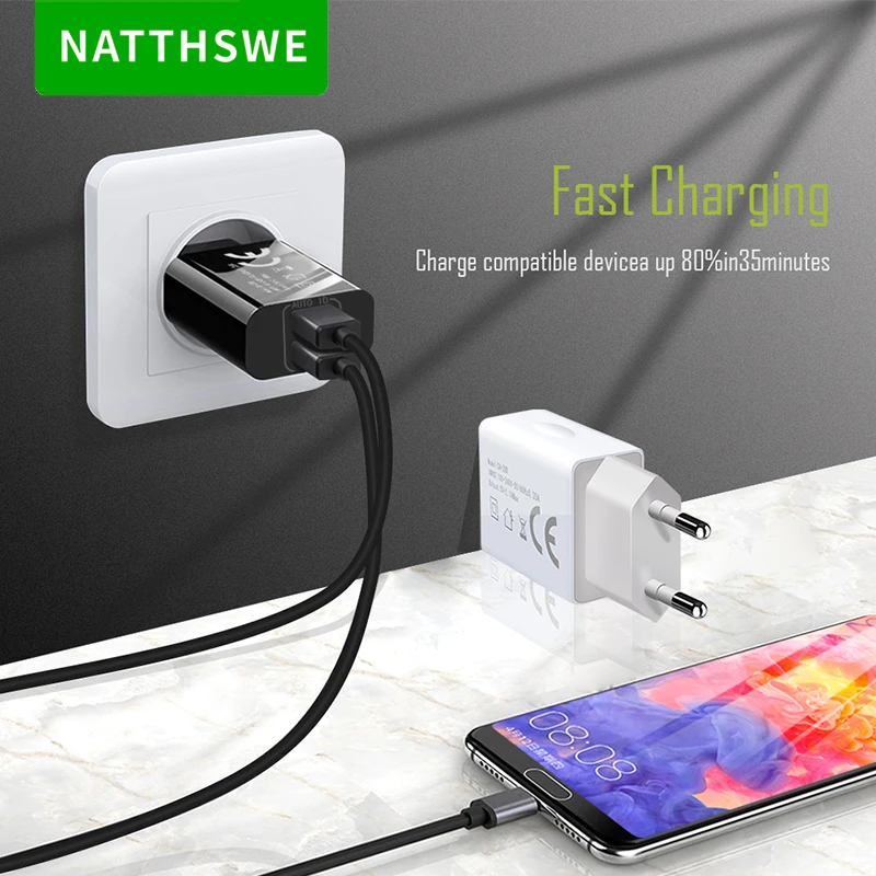 Быстрое зарядное устройство NATTHSWE 3,0 с двумя usb-портами для iPhone X 8 7 samsung Xiaomi huawei настенное зарядное устройство для путешествий, походная Зарядка для телефона