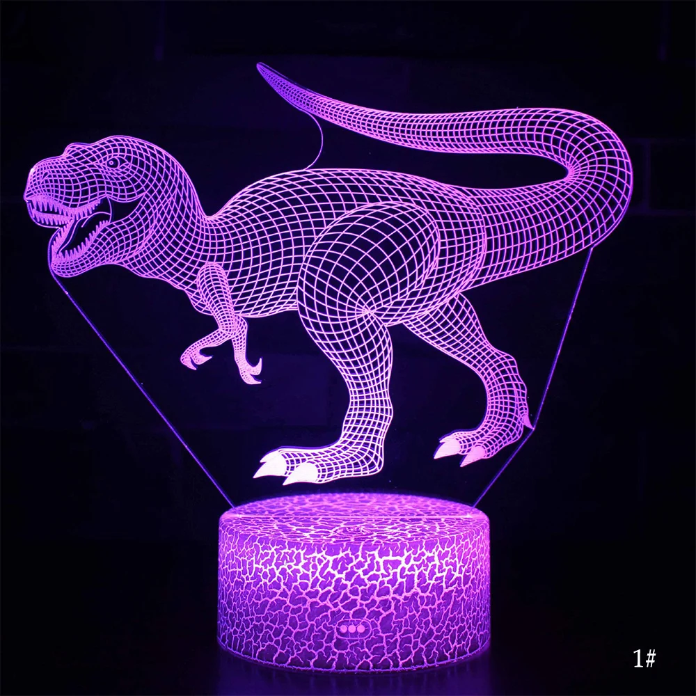 Пульт дистанционного управления и сенсорным экраном Управление 3D светодиодный Ночной светильник серии динозавров 7 / 16 Цвет изменить светодиодные настольные лампы, детский подарок на Рождество, украшение дома