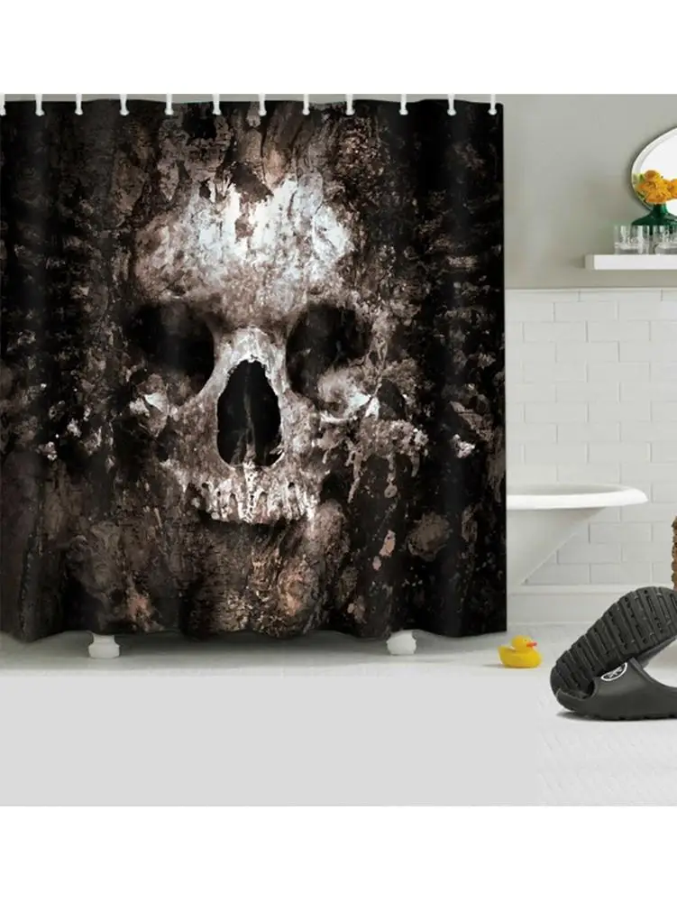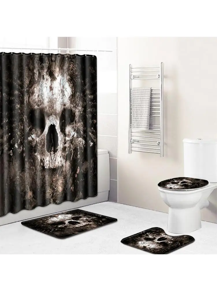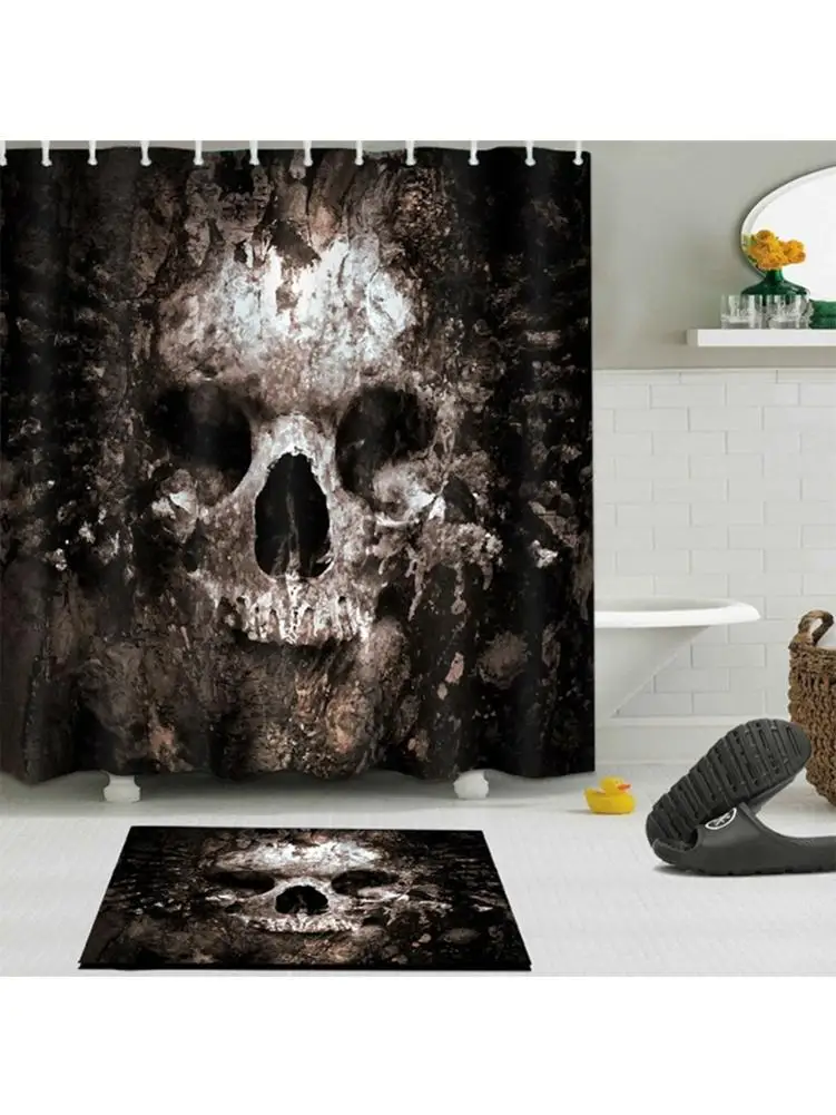 Занавеска для душа с черепом и ковриком для ванны в стиле ретро, водонепроницаемая полиэфирная ткань для ваннойВанной Искусство