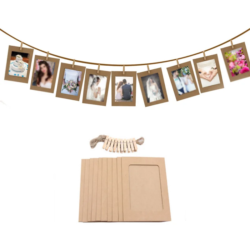 10 шт. DIY крафт-бумага фоторамка подвесная настенная рамка для фотографий и картин крафт-бумага с зажимами и веревкой украшения для дома и свадьбы