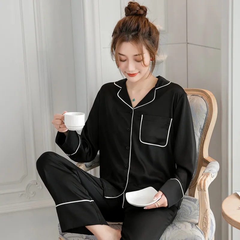 Шелковые пижамы с длинным рукавом, весна, осень, зима, Женская шелковая пижама комплекты, пижама Mujer, одежда для сна, костюм пижама, Свободная Домашняя одежда