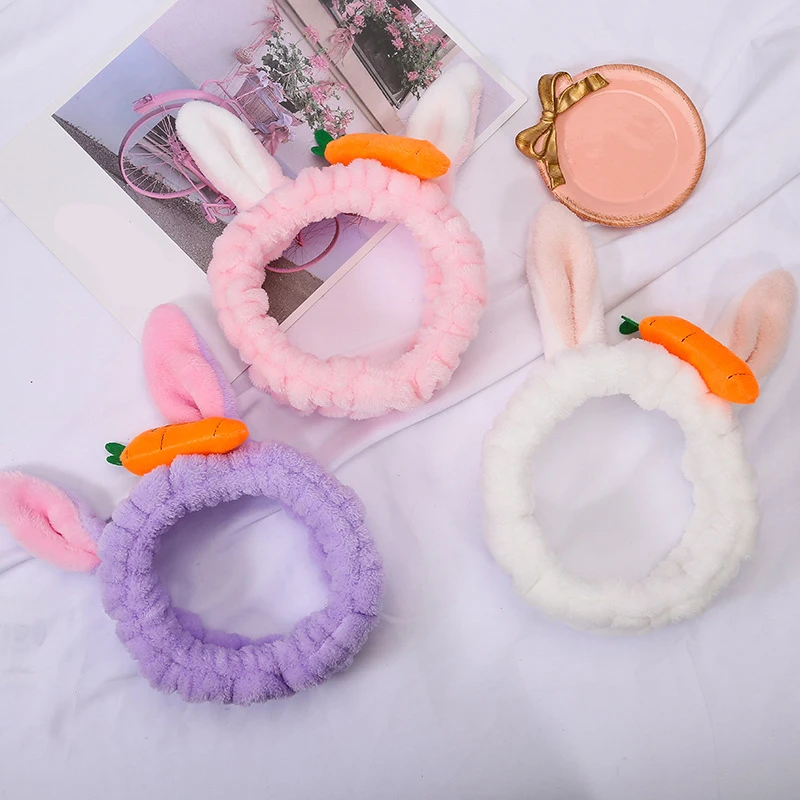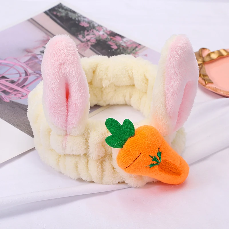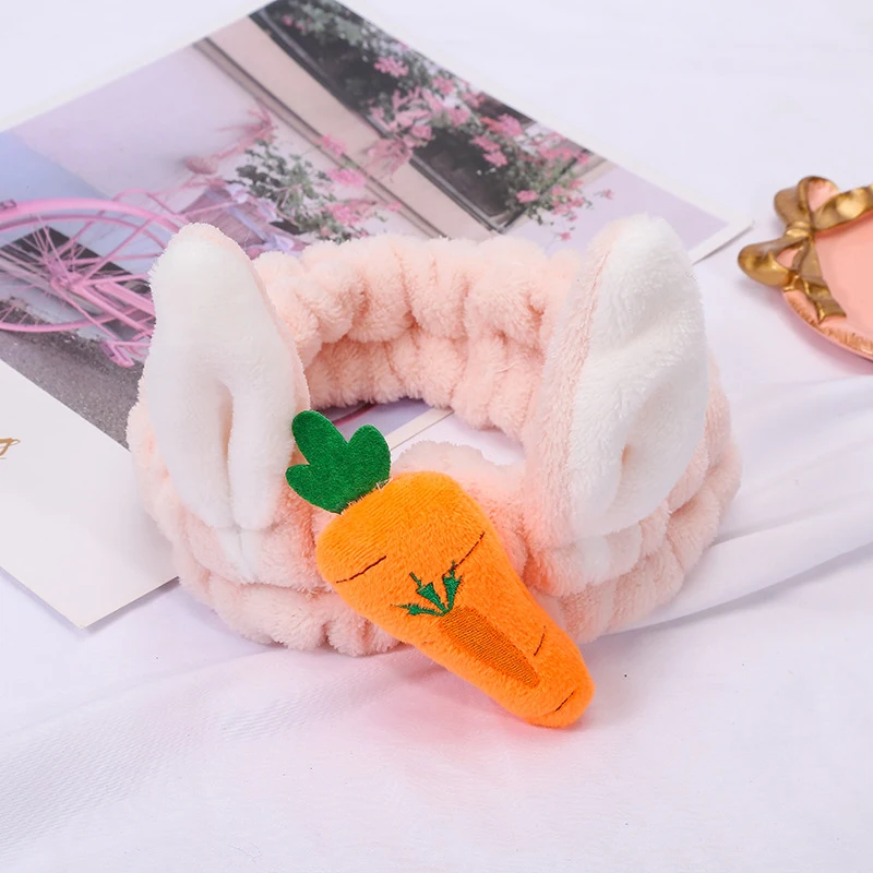 Милая 3D повязка на голову с кроличьими ушками и морковкой для макияжа, Мягкая повязка на голову